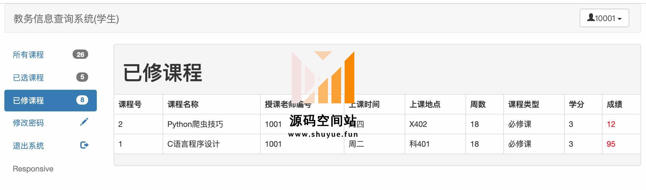 学生账号:10001 密码:123