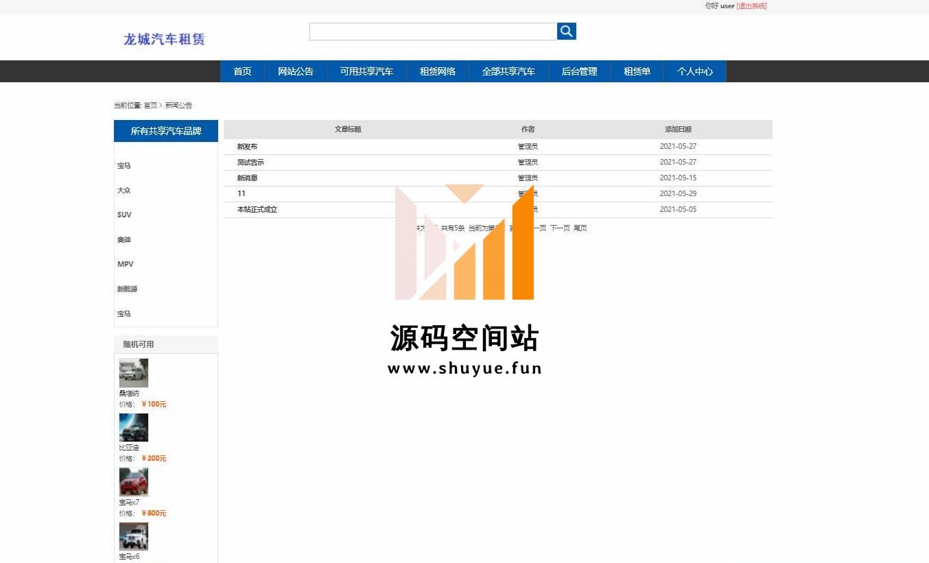 管理员角色包含以下功能:查看首页,查看网站公告,查看可用共享汽车,查看租赁点,查看汽车详情,加入租赁单,提交订单,查看我的订单,修改个人信息等功能。