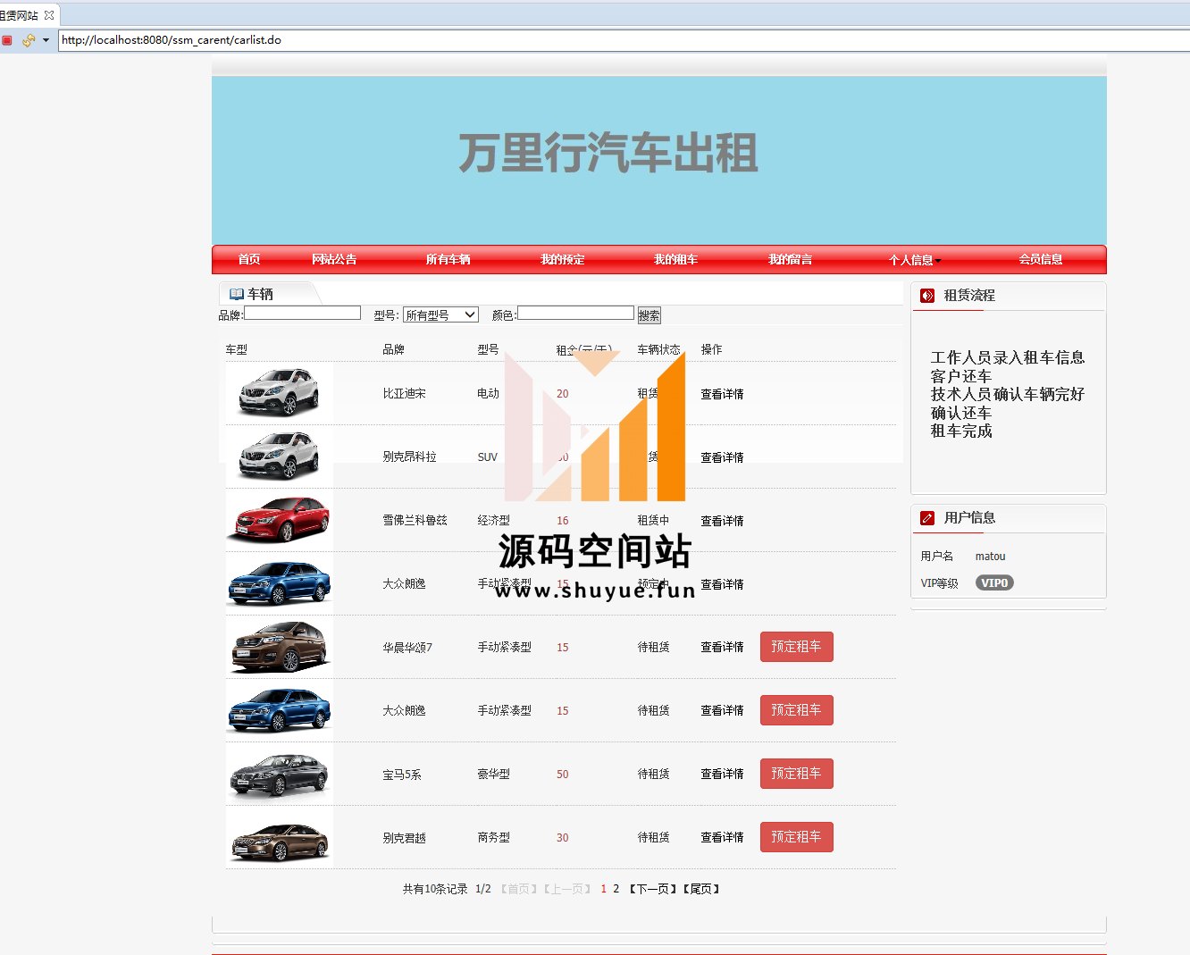 管理员登录,员工管理,车辆管理,公告管理,图片管理,统计管理等功能。工作人员登录,车辆租赁管理,预定管理,留言管理,会员管理等功能。