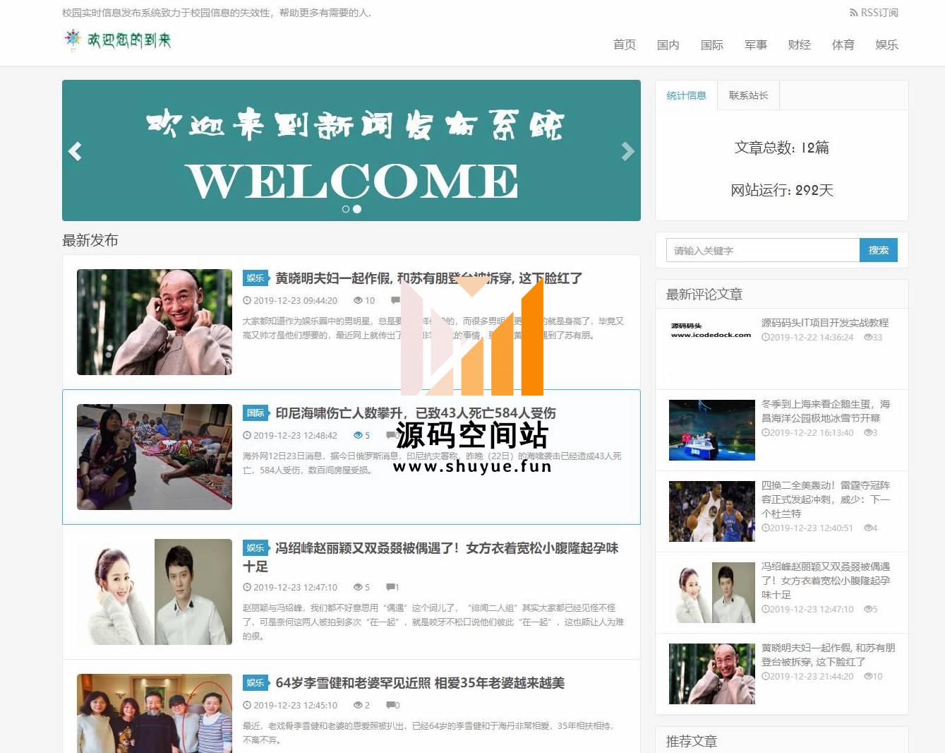 新闻搜索,查看新闻,用户首页,评论新闻等功能。分类管理,新闻管理,管理员登录,评论管理等功能。