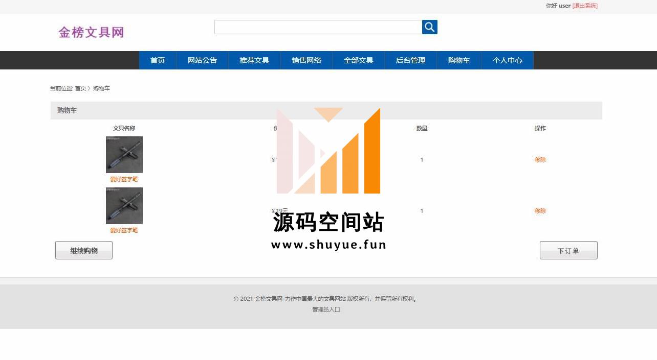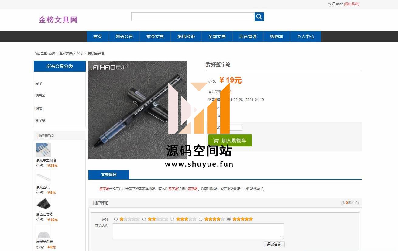 管理员登录,管理员信息管理,查看用户信息,新闻公告信息管理,文具类型信息管理,城市信息管理,配货点信息管理,文具信息管理,订单信息管理,查看评价信息等功能。按分类查看,用户登录,查看商品详情,加入购物车,提交订单,查看订单,修改个人信息,查看网站公告,查看配货站等功能。