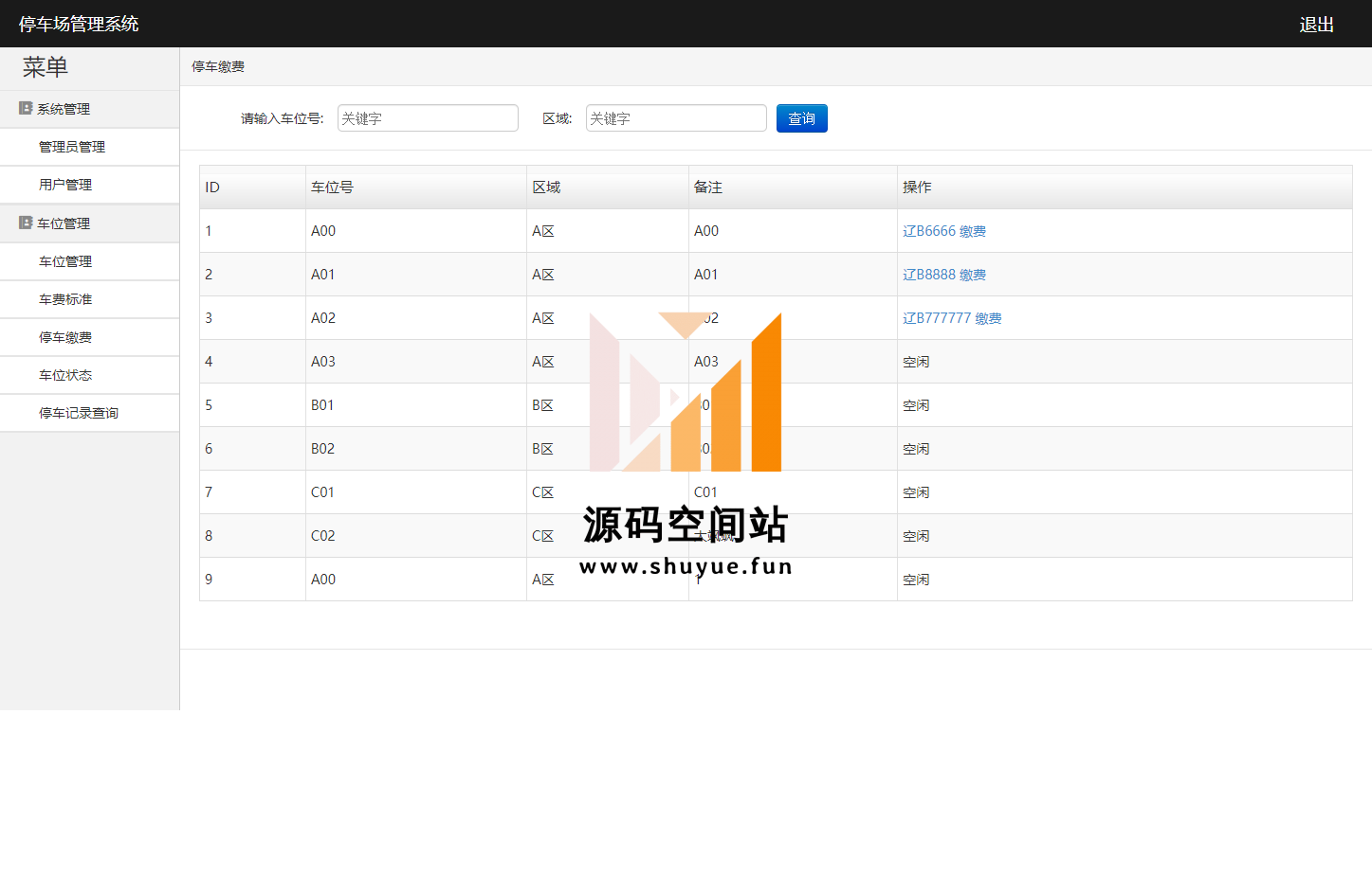 管理员登录,管理员信息管理,用户信息管理,车位管理,车费标准管理,停车缴费管理,查询车位状态,停车记录查询等功能。用户登录,修改个人信息,车辆信息管理,查看卡余额,查看收费标准,车位信息管理,停车记录查看等功能。