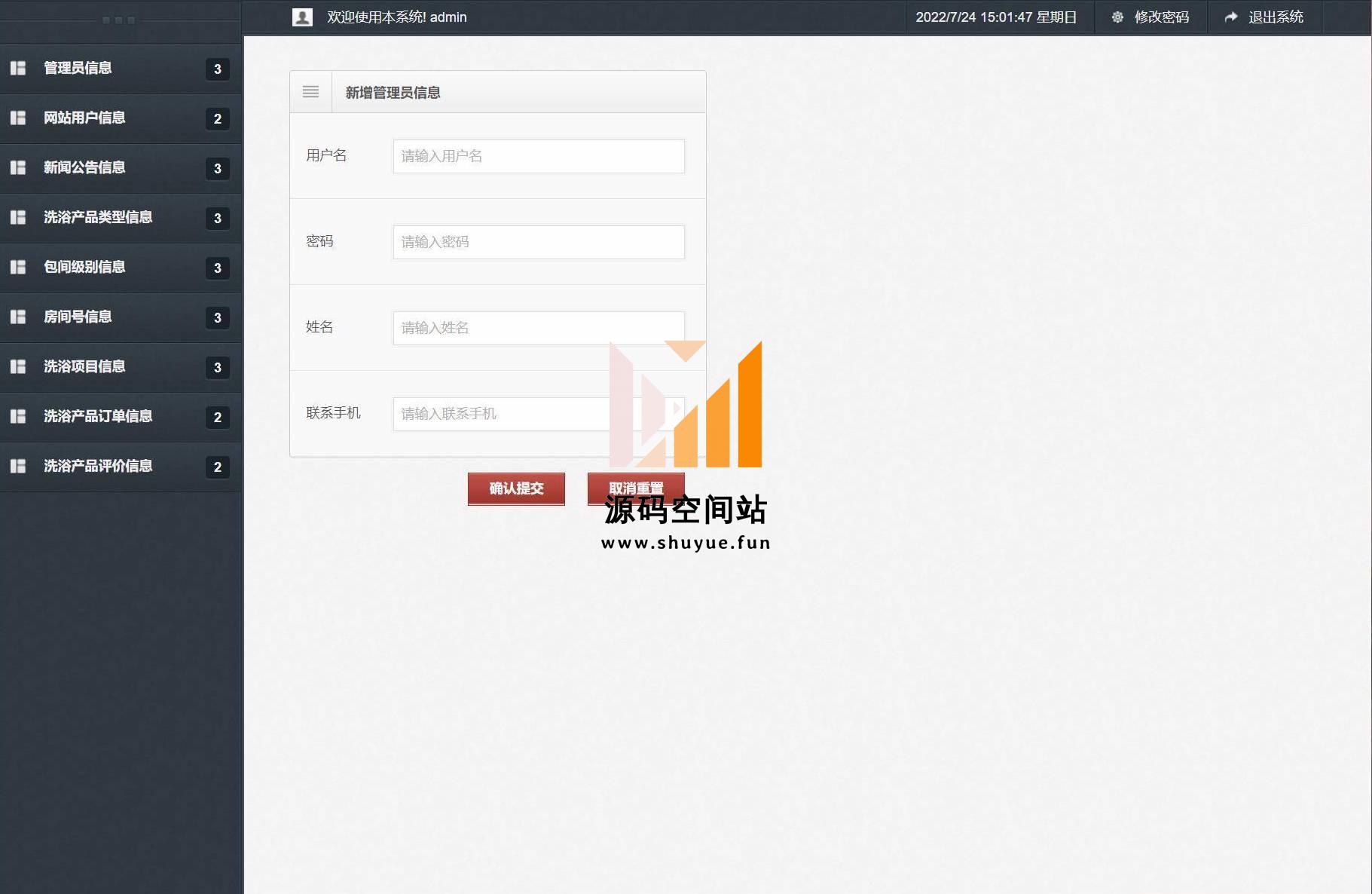 管理员账号/密码:admin/admin