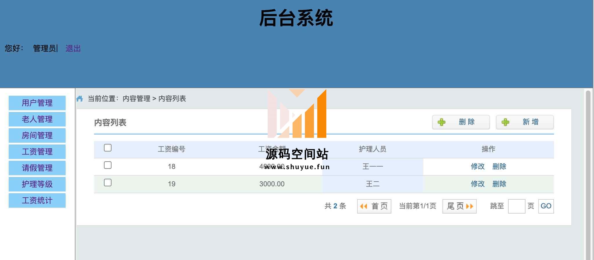 护理人员用户名:王一 密码:123456