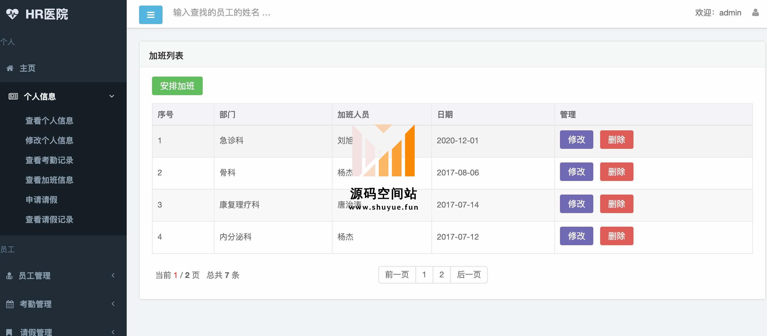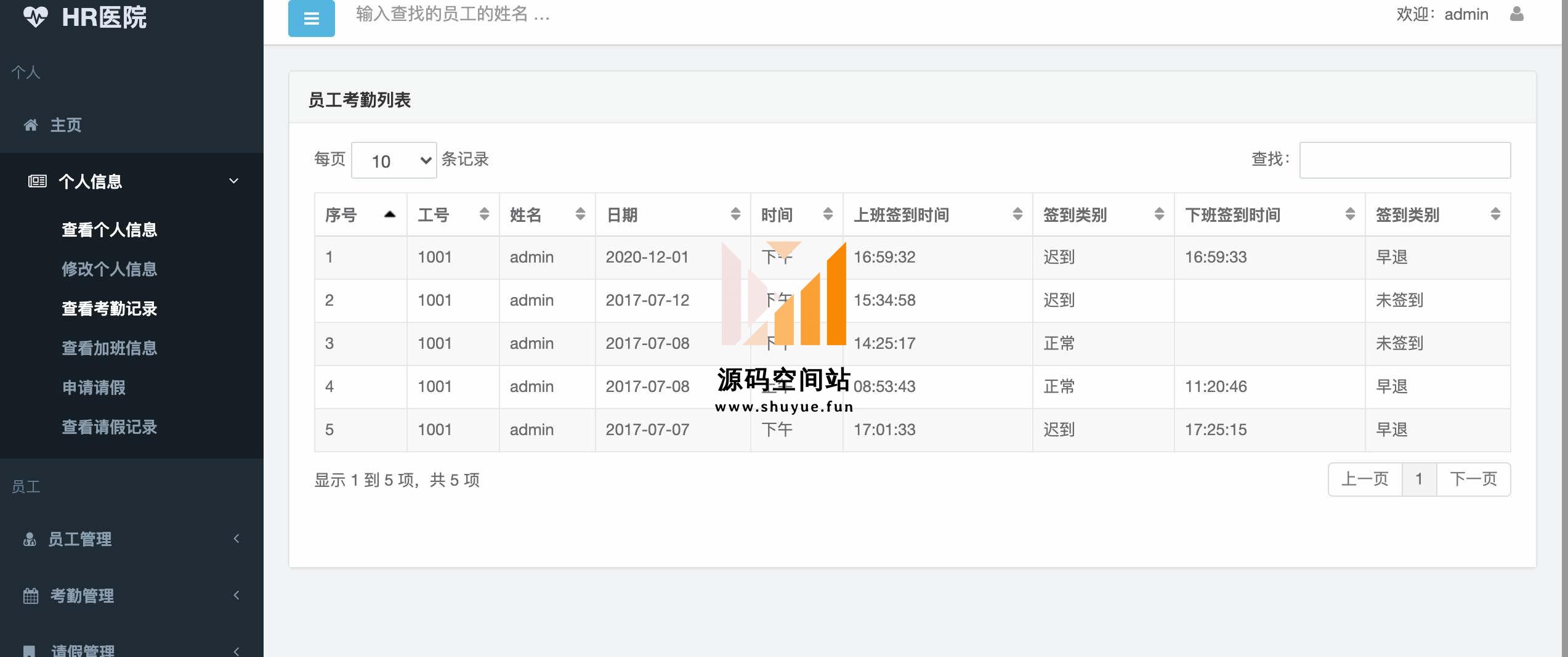 人事管理系统,实现的模块有:个人信息管理模块、员工管理模块、考勤管理模块、请假管理模块、部门管理模块。