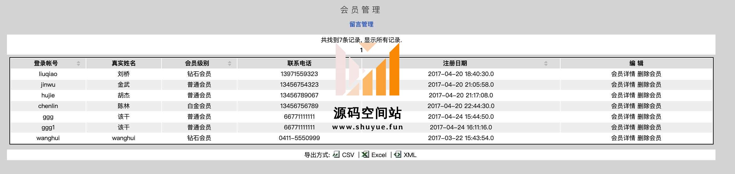 |--会员信息管理 主要实现会员信息的查询,和删除功能