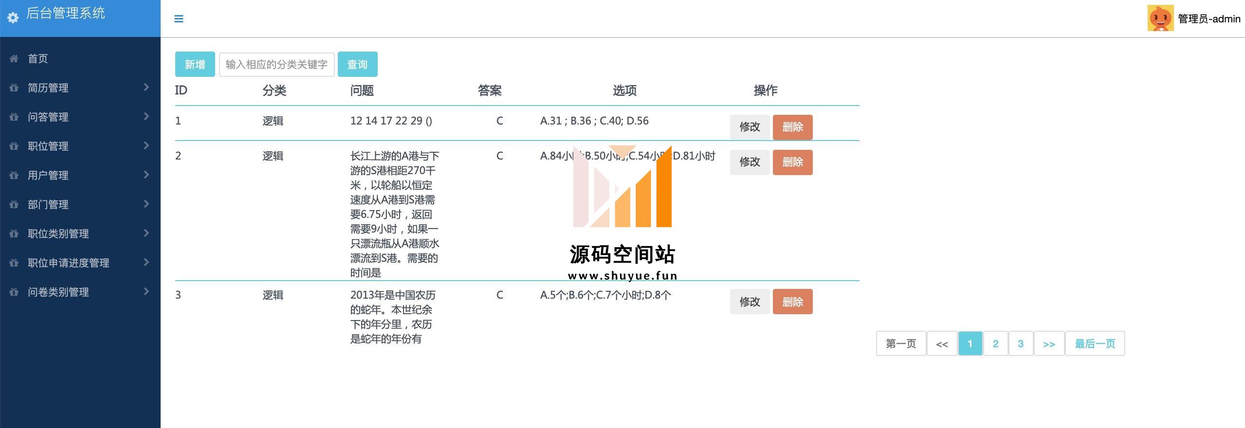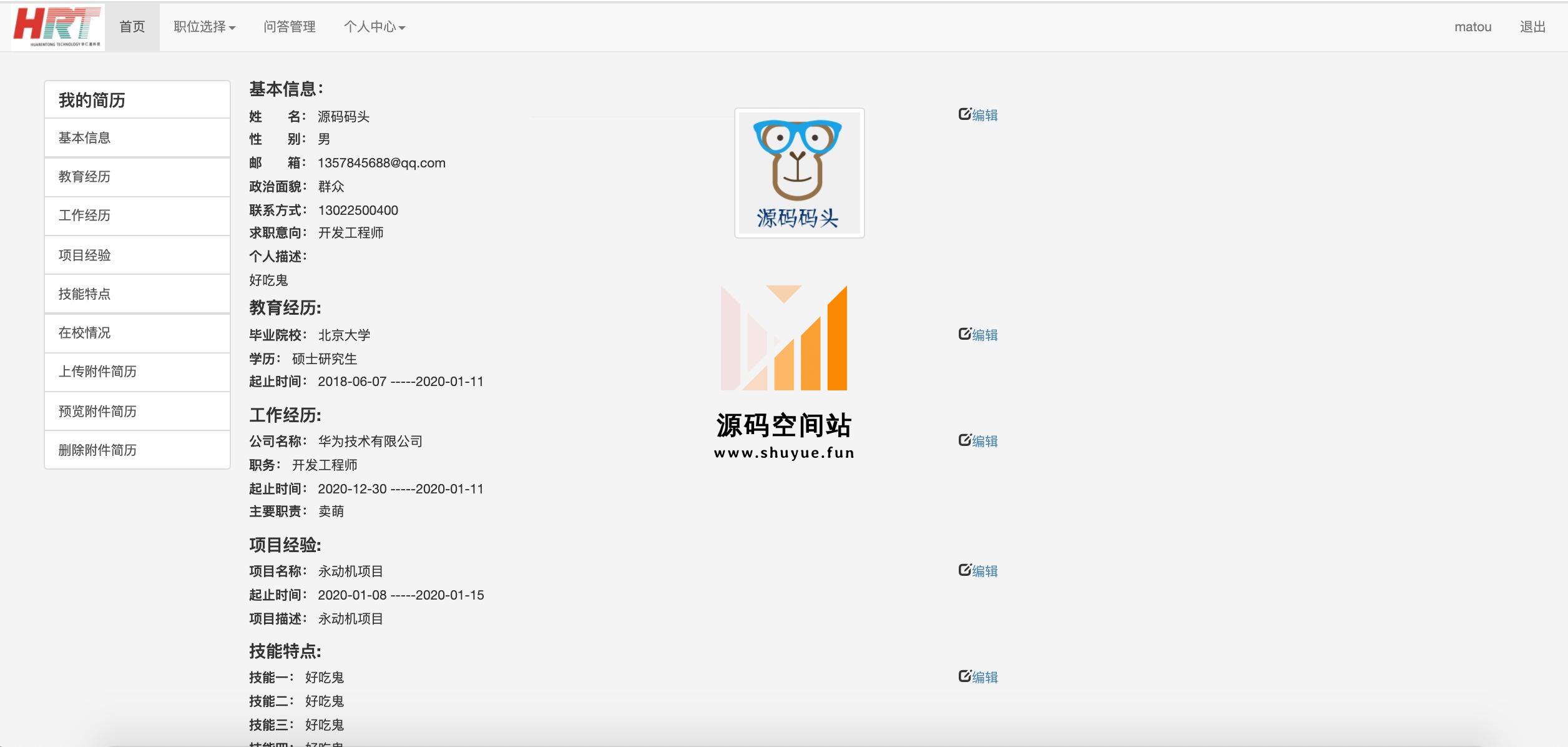 0条评论SpringBoot招聘网站项目。主要功能说明: 管理员登录,简历管理,问答管理,职位管理,用户管理,职位申请进度更新,查看简历等功能。