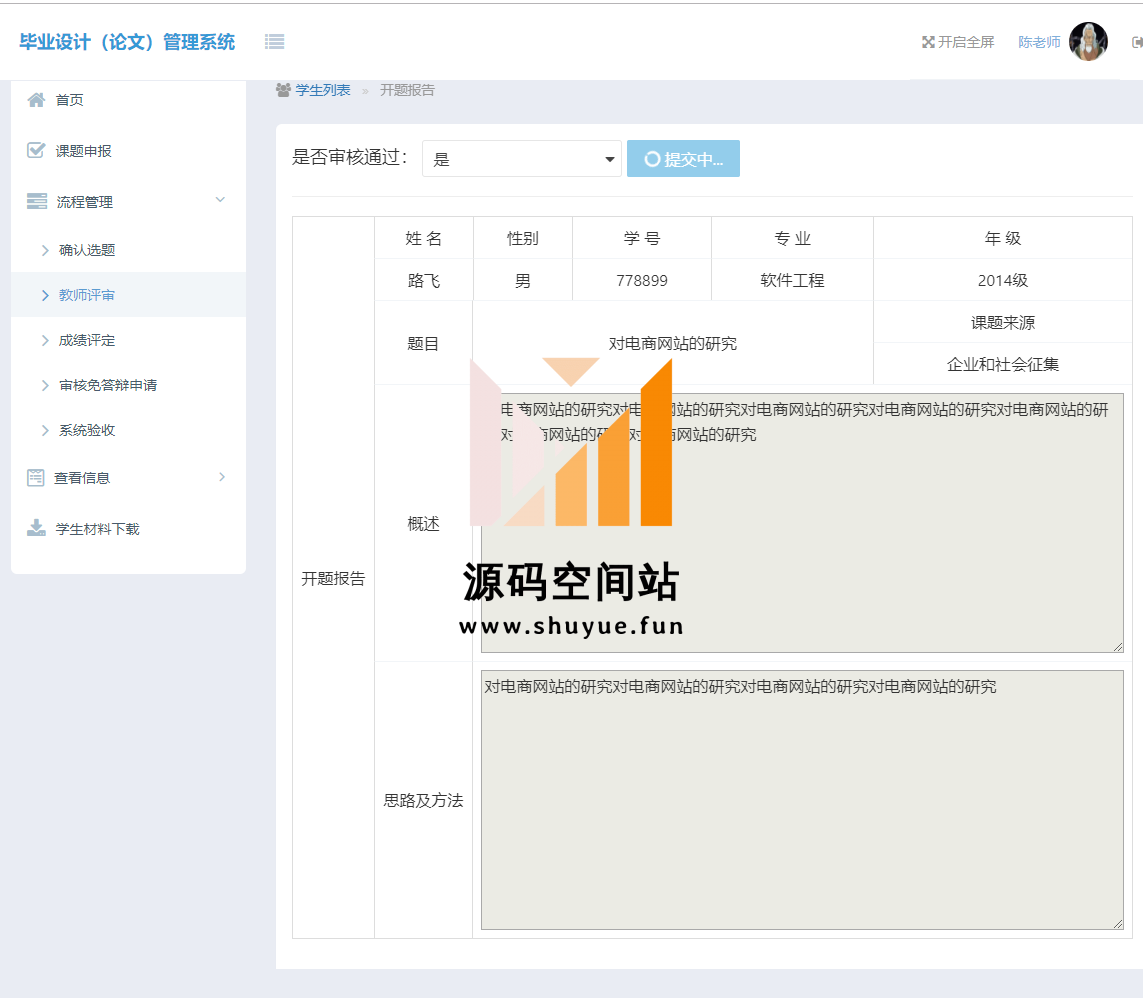 查看通知公告,登录,登录后学生主页面,选择课题,选择课题后状态为等待老师去人状态,填写开题报告,提交中期检查,提交免答辩申请,上传论文等功能。教师角色登录,教师首页,申报课题,审批学生选题,审核开题报告,审核中期检查,初审免答辩申请,审核论文是否过关,综合打分等功能。