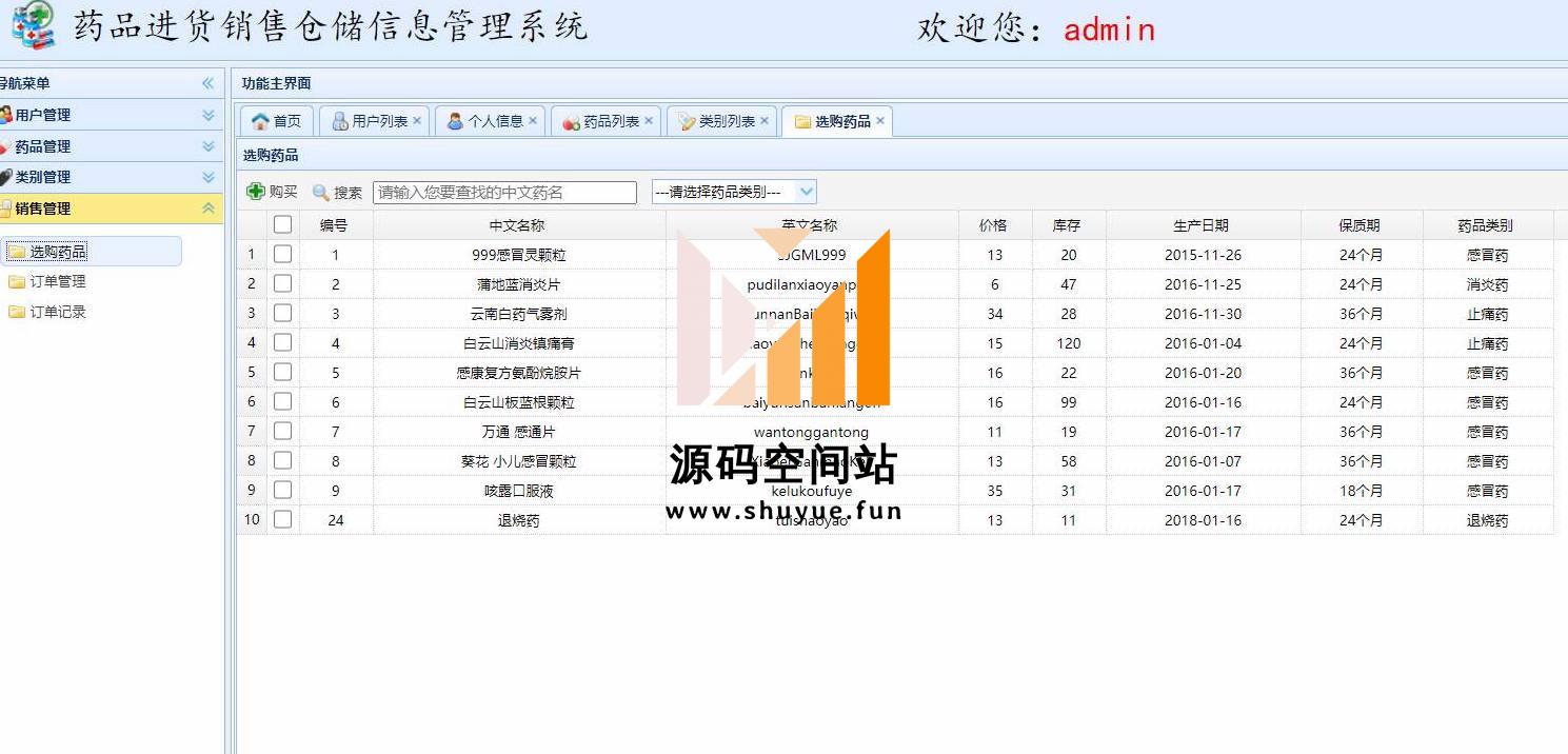 管理员登录,用户信息管理,个人信息管理,药品信息管理,药品类别信息管理,选购药品管理,订单管理,订单记录管理,库存信息管理,进货记录管理等功能。操作员登录,药品管理,类别管理,销售订单管理,进货管理等功能。