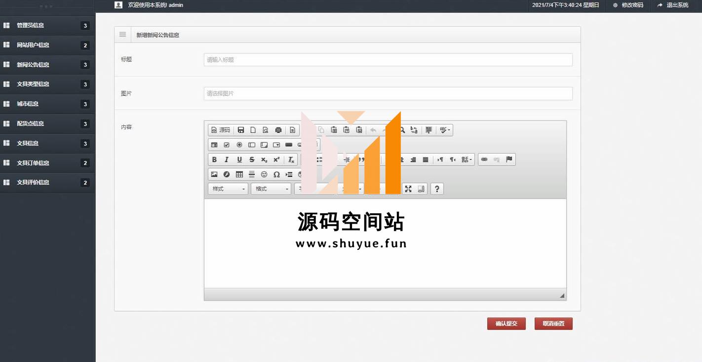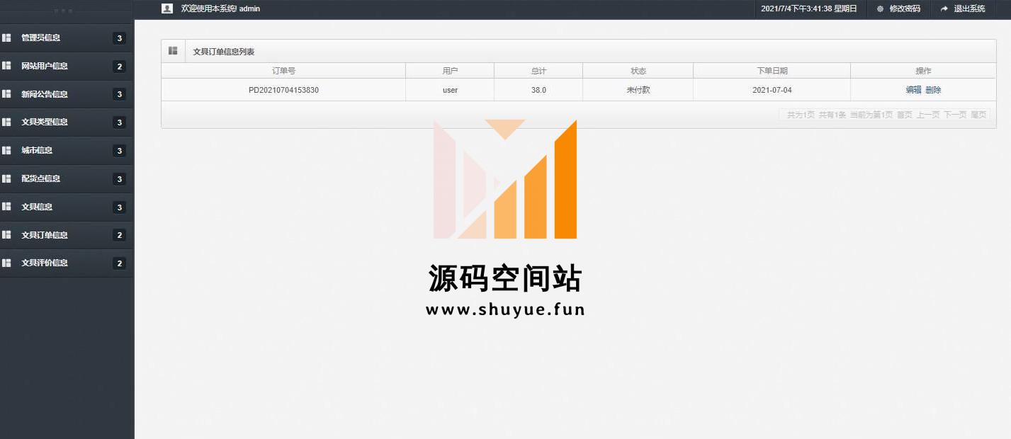 管理员登录,管理员信息管理,查看用户信息,新闻公告信息管理,文具类型信息管理,城市信息管理,配货点信息管理,文具信息管理,订单信息管理,查看评价信息等功能。按分类查看,用户登录,查看商品详情,加入购物车,提交订单,查看订单,修改个人信息,查看网站公告,查看配货站等功能。