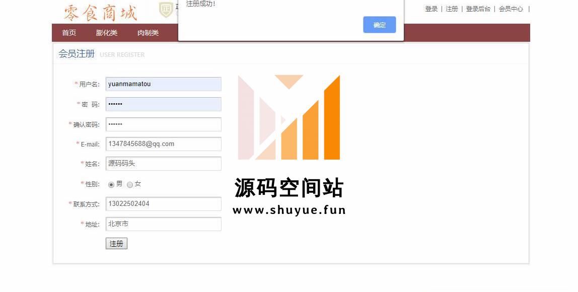 3. 将项目中jdbc.properties配置文件中的数据库配置改为自己的配置;后台地址:http://localhost:8080/snack/admin/login/adminLogin