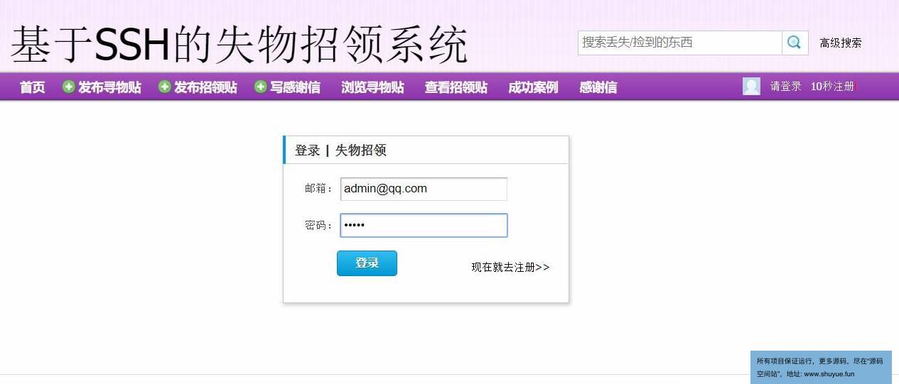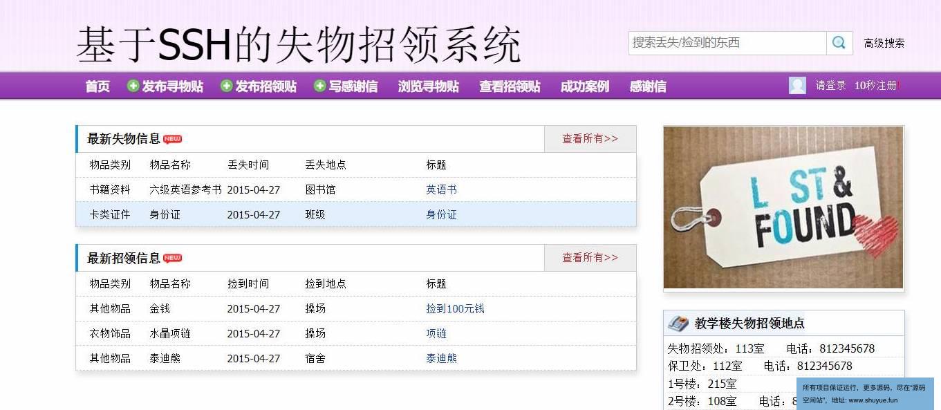 管理员登陆,用户信息管理,招领列表管理,寻物信息管理,公告管理,留言感谢管理,系统日志管理等功能。