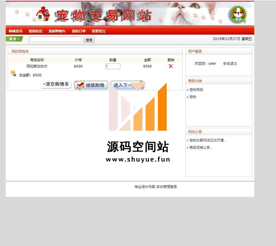 用户首页,商品详情,加入购物车,付款,查看购物车,查看我的订单,留言板等功能。