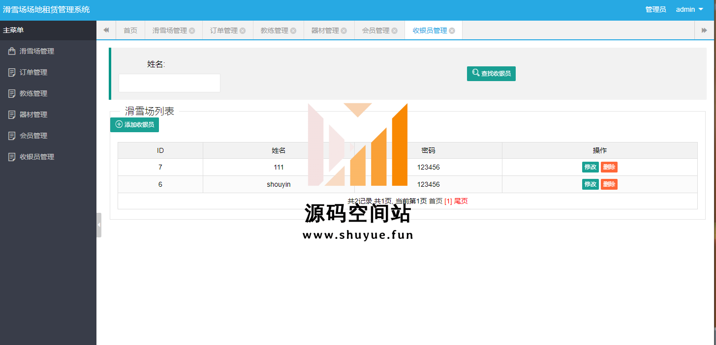 滑雪场管理,订单管理,教练管理,器材管理,会员管理等功能。