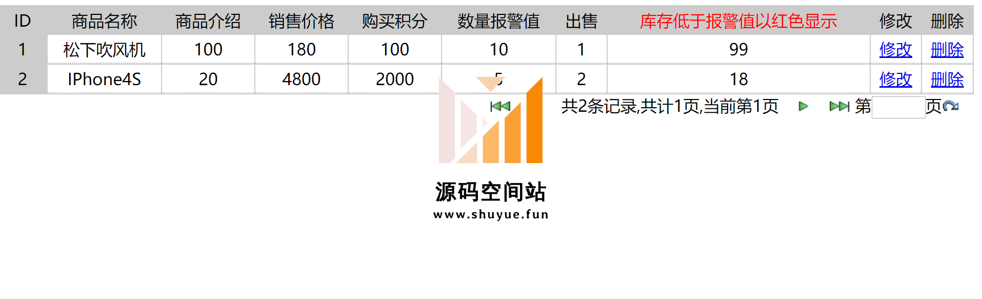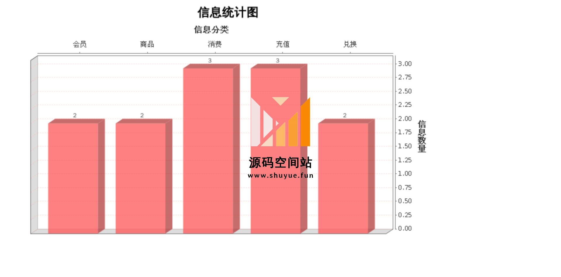 登录,系统用户管理,修改后台登录密码,会员管理,添加会员,注册用户管理,会员卡管理,添加会员卡,会员卡充值,商品管理,会员积分统计,留言管理,信息统计图,积分兑换商品等功能。更多项目源码,请到“源码空间站”,地址:http://www.shuyue.fun/