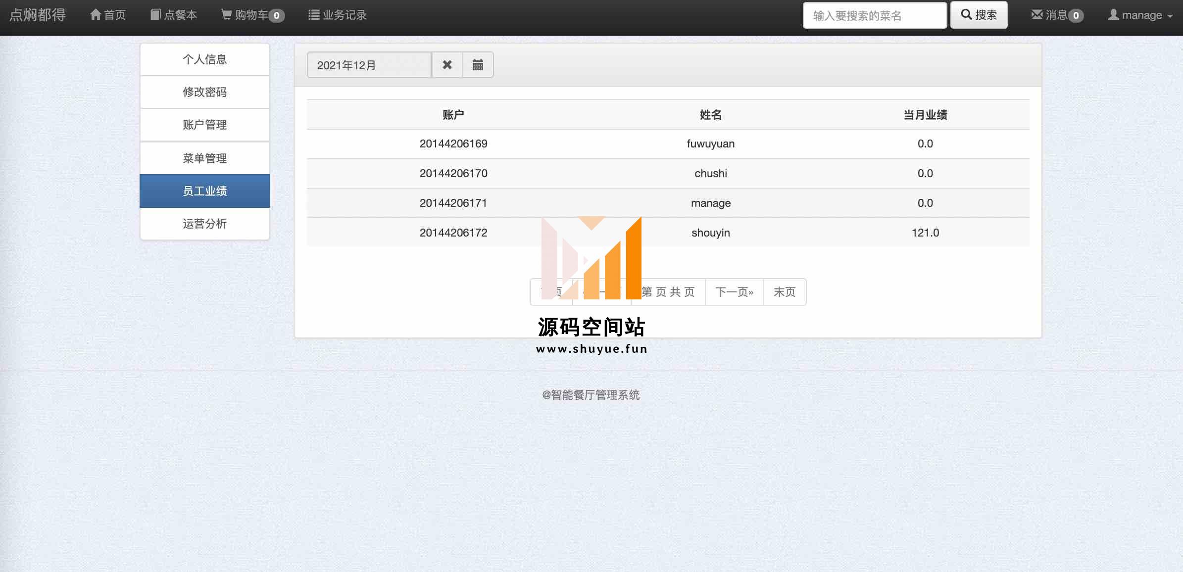 0条评论管理员可以查看到餐厅的近期运营状况。包括最近的营业额,各个菜品的销售情况等。