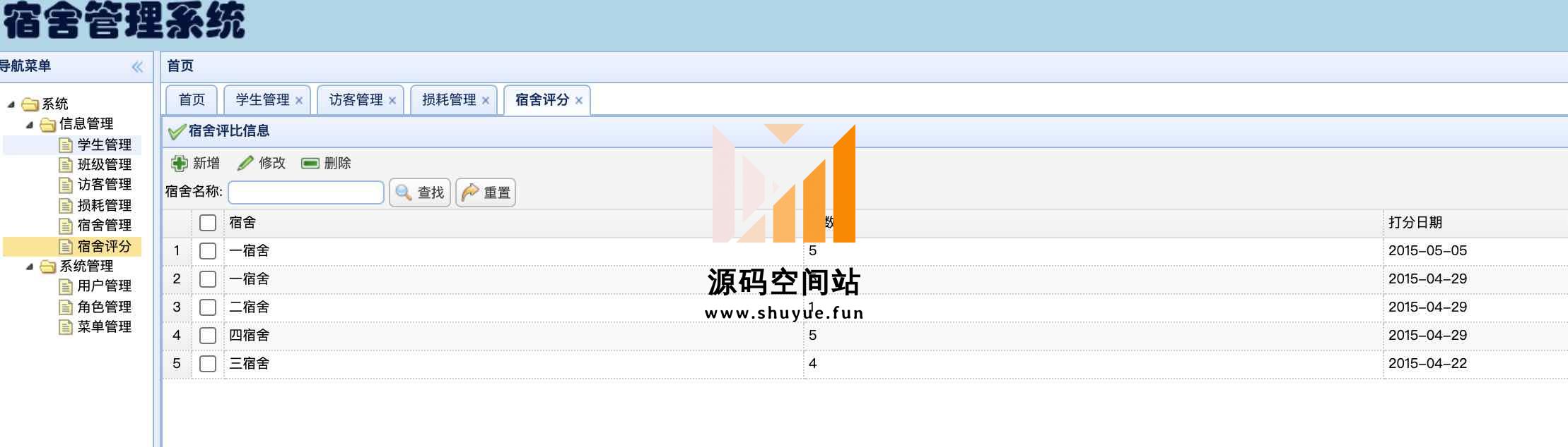 学生管理、班级管理、访客管理、损耗管理、宿舍管理、宿舍评分;