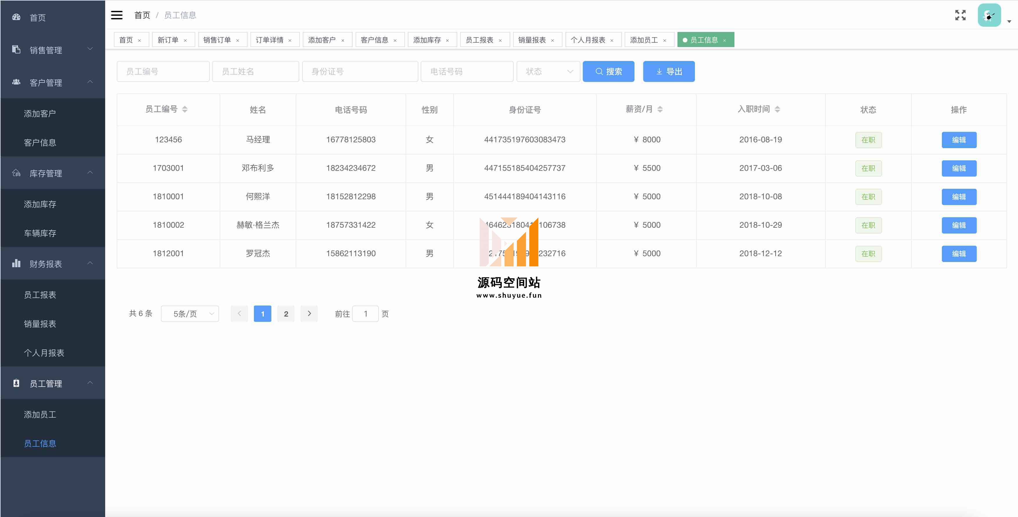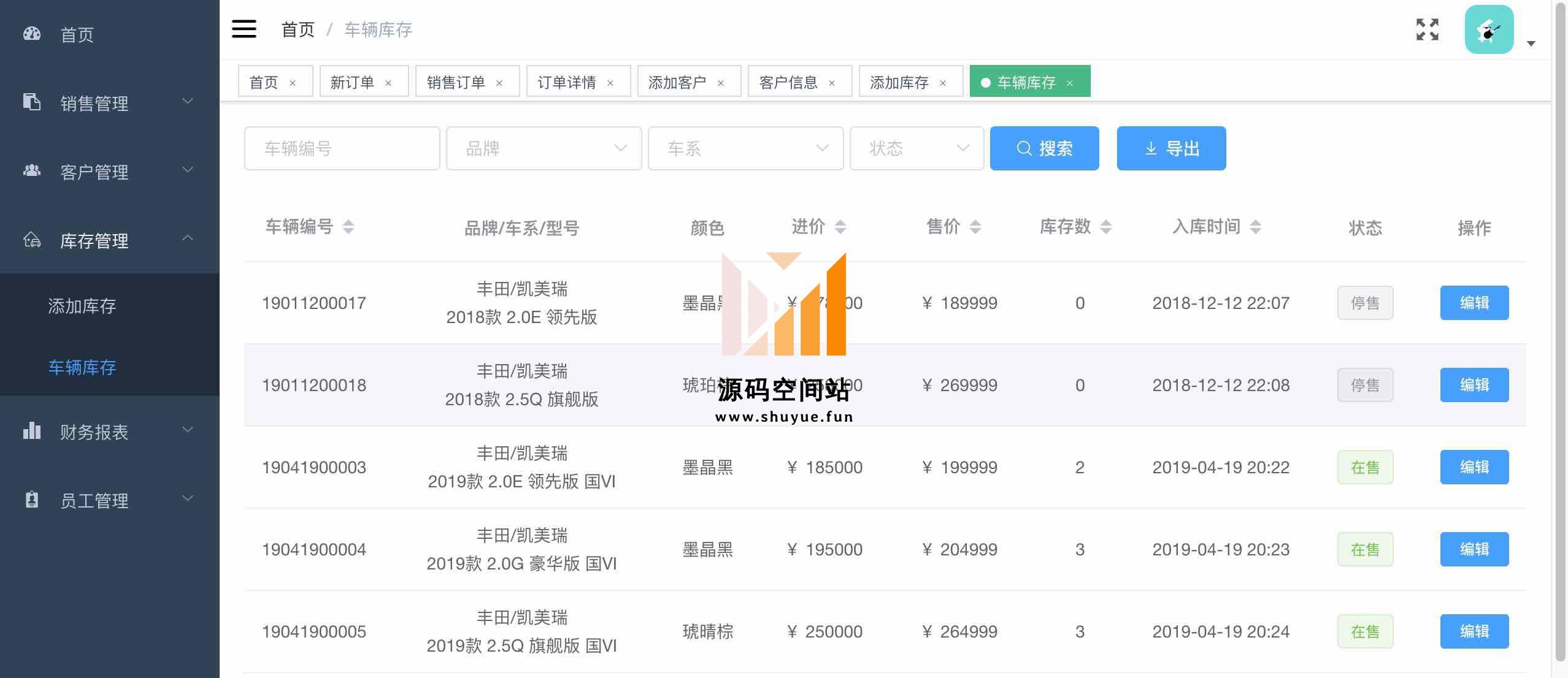 0条评论首页、销售管理(新订单、销售订单、订单详情)、客户管理(添加客户、客户信息)、库存管理(车辆库存)、个人月报表、我的信息