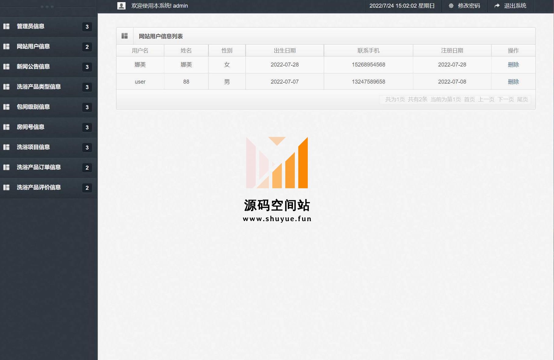 管理员账号/密码:admin/admin